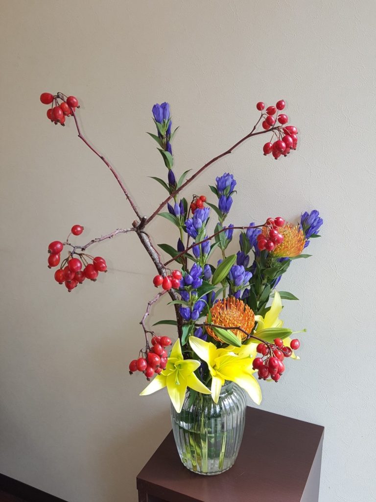 今回は、お客様にいただいた秋のお花を生けさせていただきました。