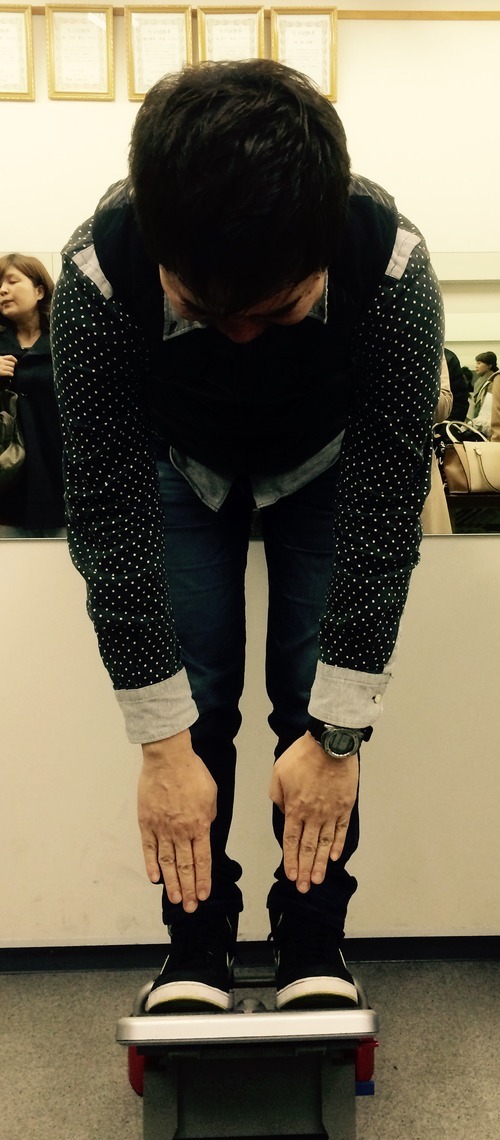 全店集会前に時間があり、足元を見ると前屈の道具が…乗ってみると凄く筋が伸びて気持ちが良かったです(^_^)♪