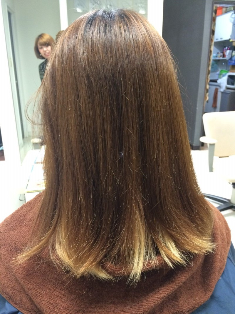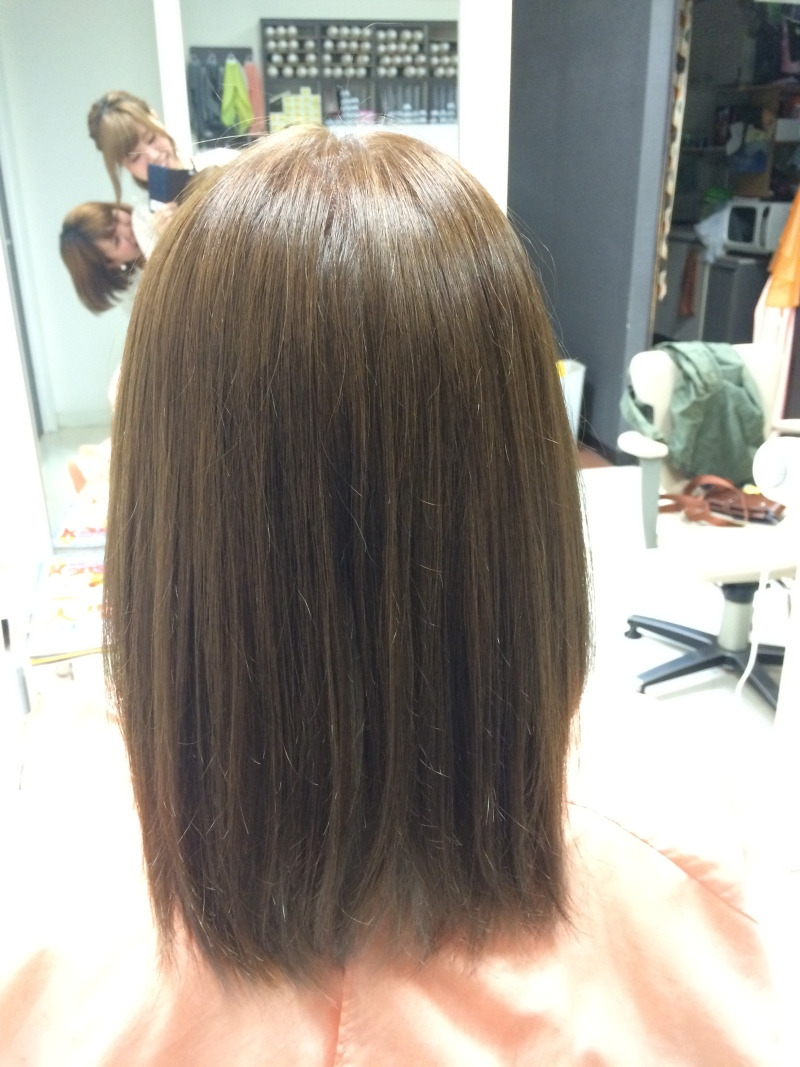 根元のプリンもなくなり、明るさはキープしつつ、アッシュの色味が入りました