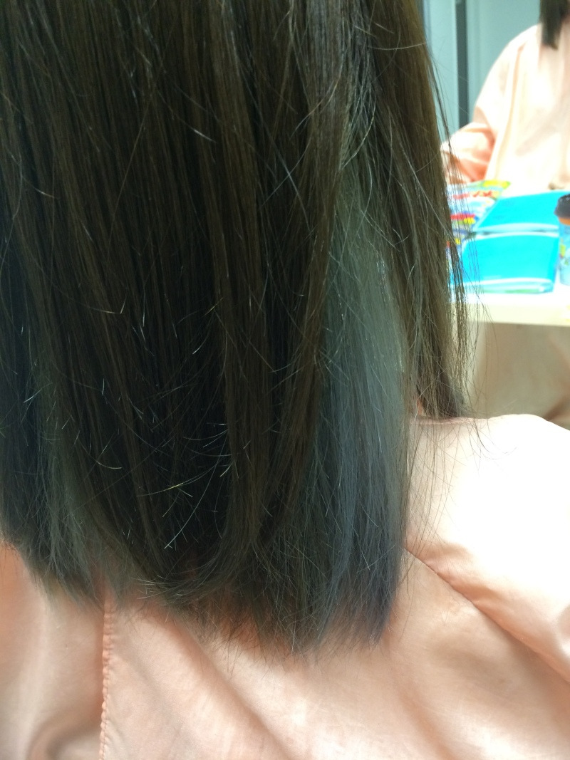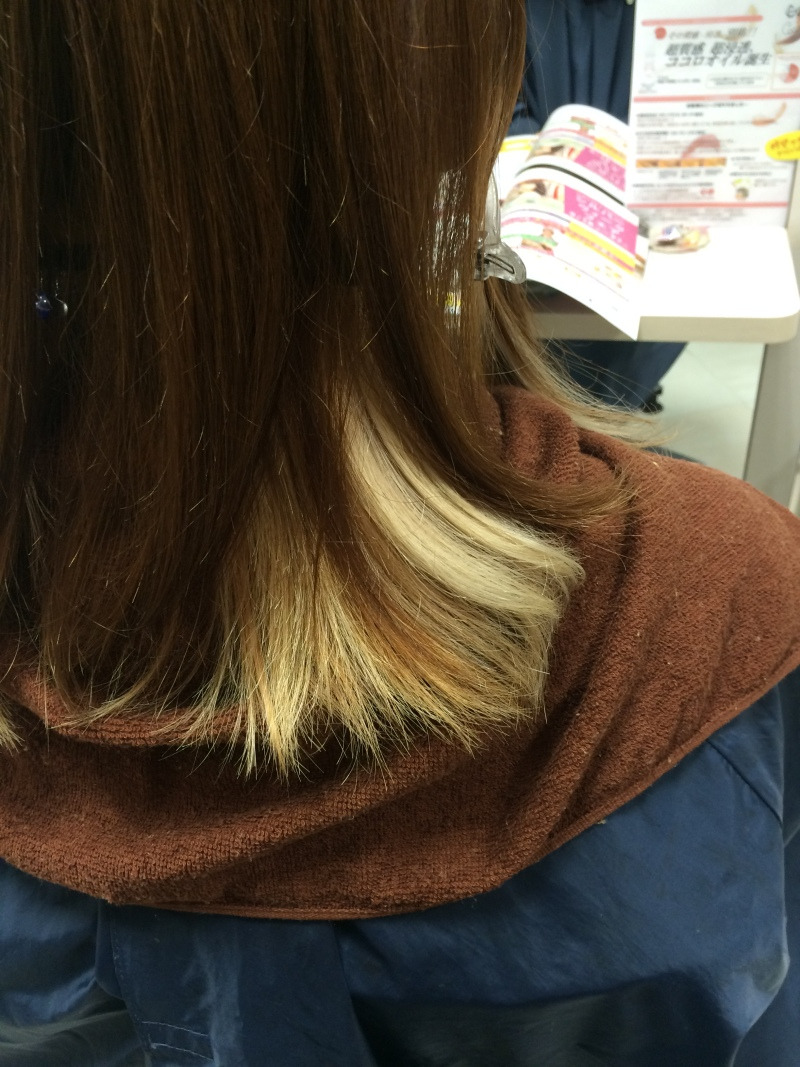 以前、襟足にマニキュアでカラーをしていましたが、今は金髪に。。。After