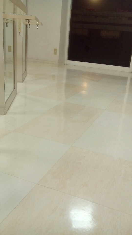 椅子をどかして、洗剤撒いて、ワッシャーで磨いて、拭き取って、上からワックス塗って、乾くの待って、椅子を戻します