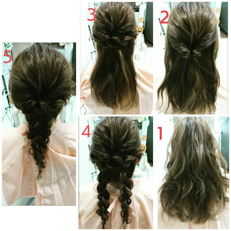 三つ編みをした髪を合わせて