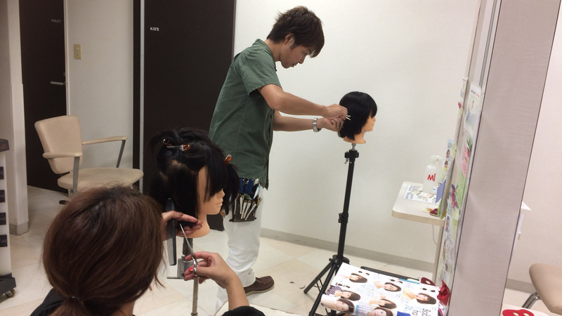 今日は平田さんが鱒店長のカットレッスン、通称『マスカット』を受けています
