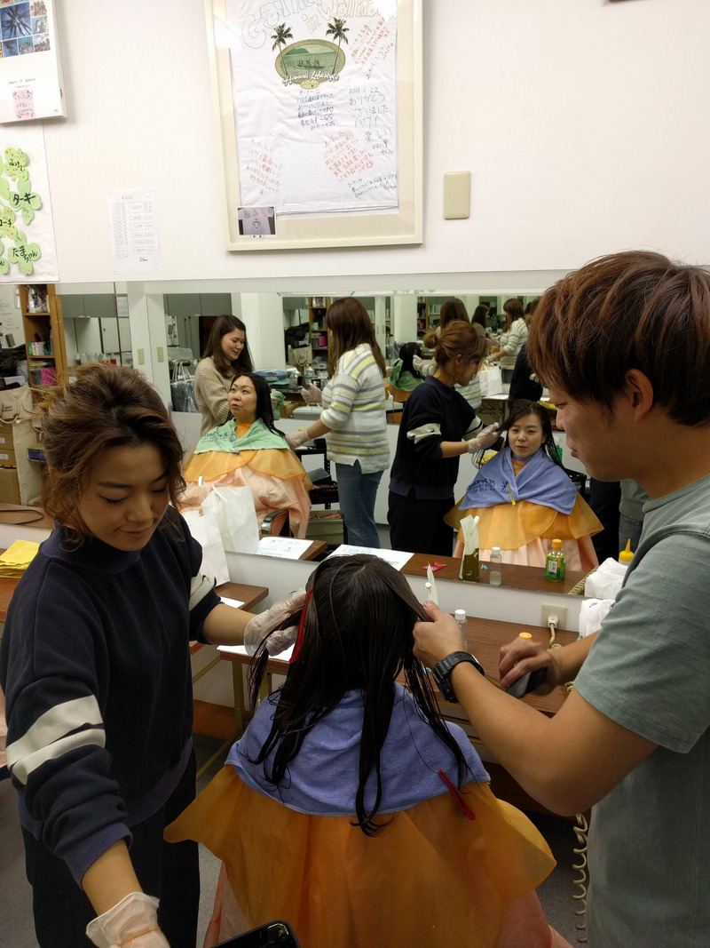 ギャザーでは、毎月パーマ講習があり、スタッフが集まりパーマの勉強をします