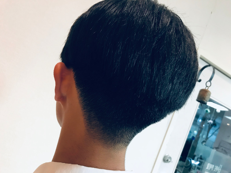 耳うえでバツンとラインを出したテクノカットです