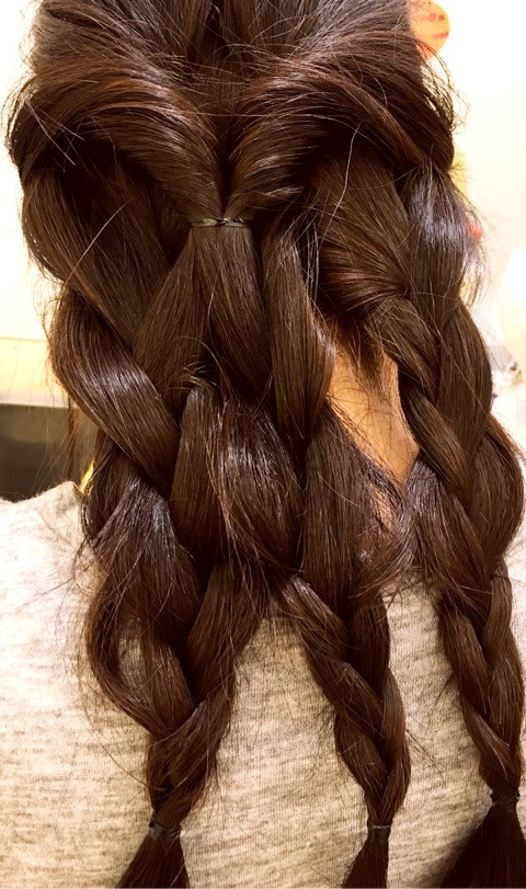 残った下の髪の毛を3つに分けてそれぞれをみつあみに。
