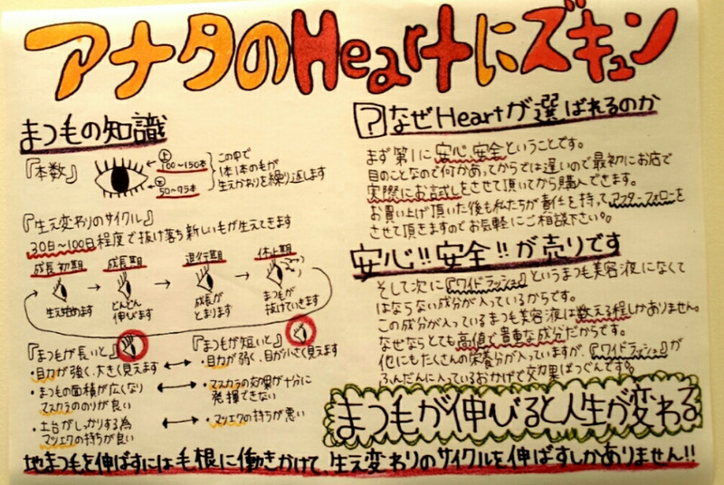 今お店では睫毛の仕組み、Heartについて、の新聞を配らせて頂いてます