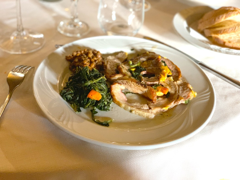 ポークソテー(横に添えられたレンズ豆もヨーロッパではコインと見立ててめでたいとのことで、お正月によく食べられるそう)