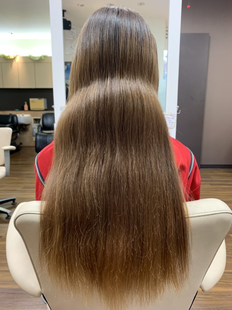 長年伸ばし続けていて、カラーもかなり繰り返しているので中間〜毛先にかけてうねりやダメージが気になる状態でした!