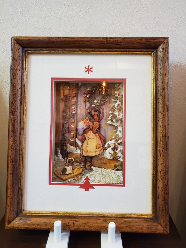 毎月季節に合わせて待ちあいの本棚の上に手作りのシャドーボックスを置いています。 実はスタッフの作品です。