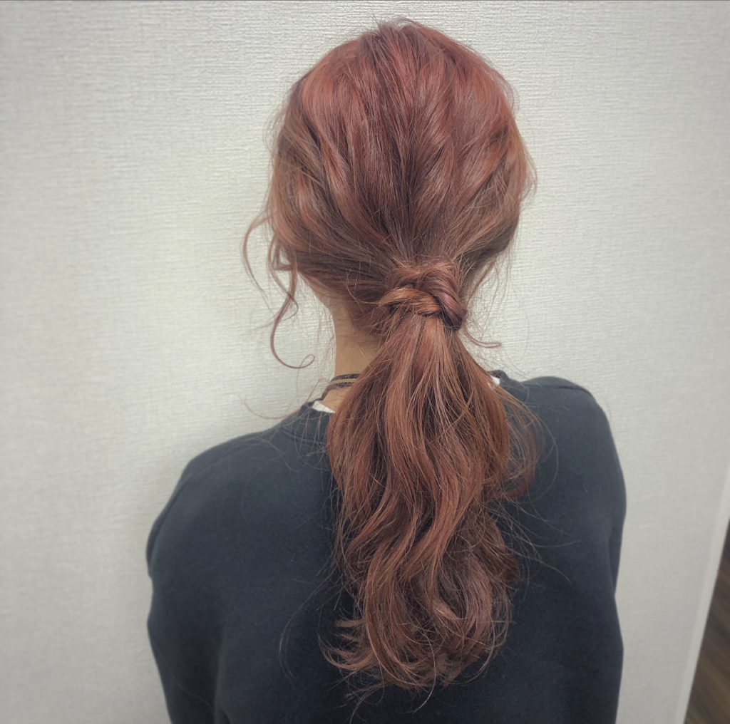 低めの位置でキュッとまとめて