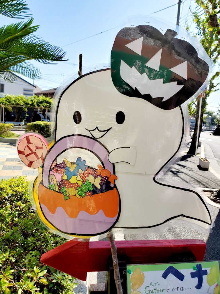 外でオバケがキャンディーを配っています(笑)