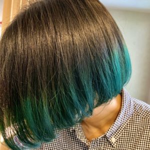 先日ご来店いただいたお客様!オーダーがゲンゴロウカラーでしたヽ(*´∀`)ノ 人生初カラーで裾カラーを深い緑(ゲンゴロウ色)にさせて頂きました!!ガッツリ裾ブリ……